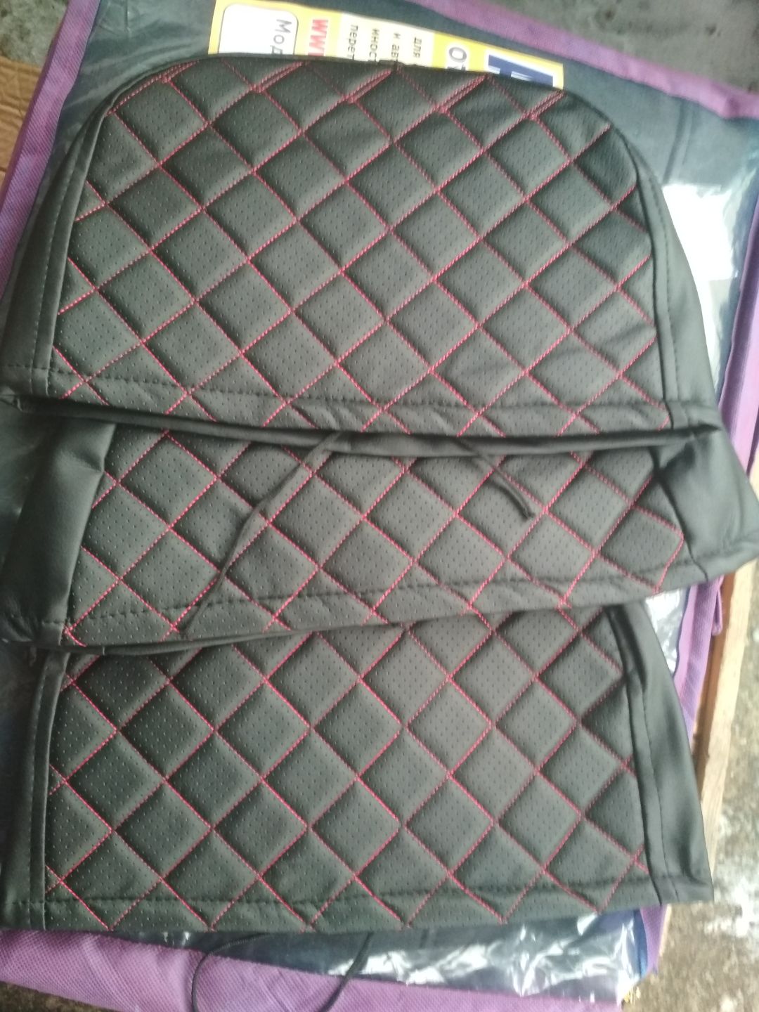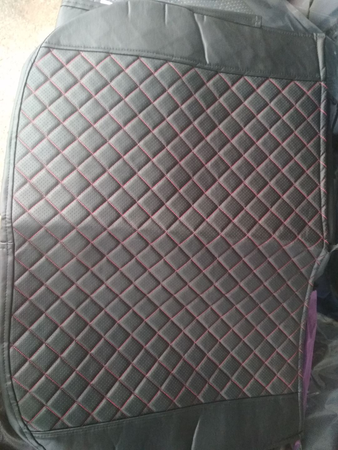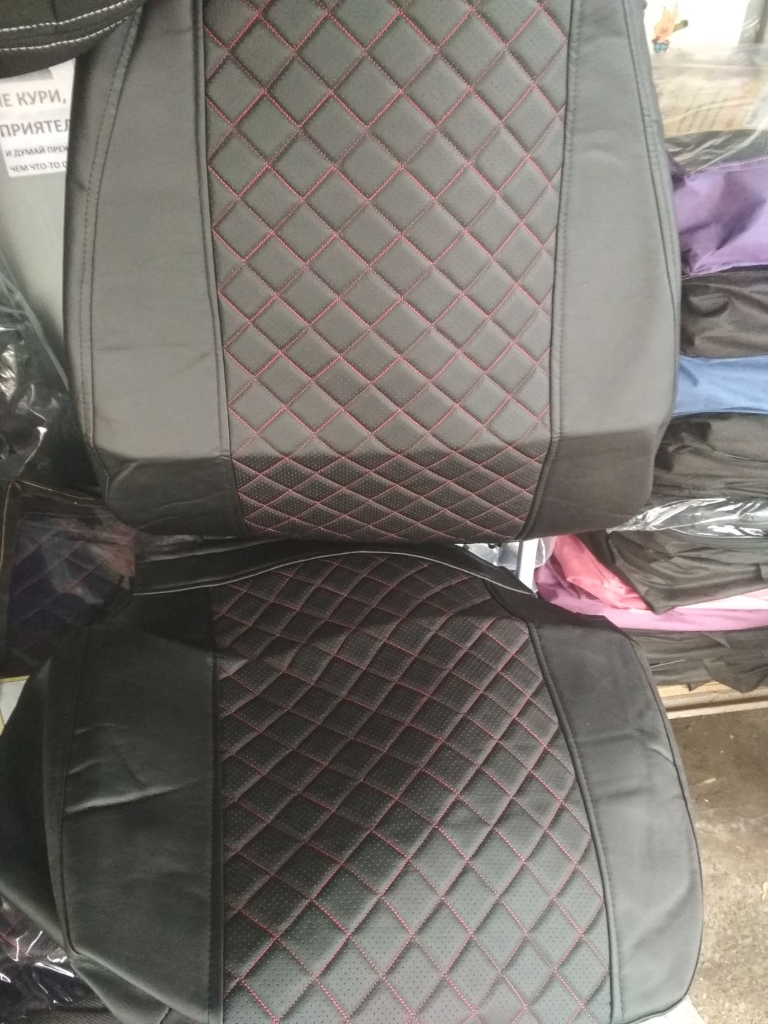 Модельные чехлы (КОМПЛЕКТ) из экокожи черные с красным ромбом газель 3 мест.