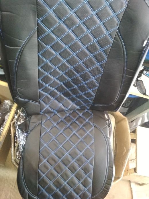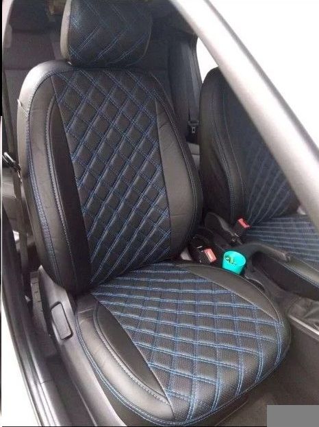 ЧЕХЛЫ ИЗ ЭКОКОЖИ ЧЕРНЫЕ С ПРОСТРОЧКОЙ СИНЕЙ НИТЬЮ РОМБОМ